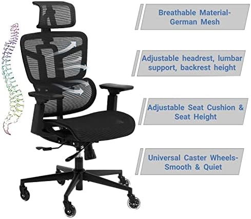 【BREATHABLE MESH CHAIR】Our breathable german mesh material provides optimal air flow to avoid sweating and sticking, keep air circulation for extra comfy, also mesh office chair resists abrasion and transformation, it makes the high back computer chair good for sitting for 4 ~ 8 hours, perfect for a long day sitting.