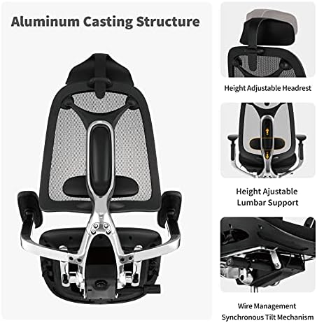 Exceptional Aluminum Alloy Frame: The armrest, seat, backrest, underframe, feet and other load-bearing parts are forged from high-quality aluminum alloy to ensure the stability and durability of the chair. The home office chair can be heavy, but it is heavy for a reason. (It has passed the tests of two major quality supervision organizations, BIFMA and SGS.)