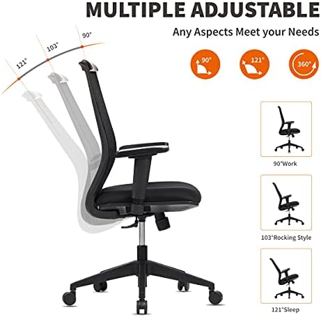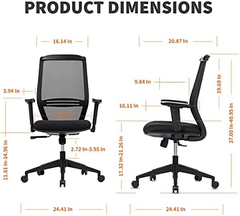 Easy to Install High-Back Office Chair: All ergonomic task chairs come with 3 year warranty, Any questions about for this lumbar support office chair, we will offer you satisfactory solutions. With clear instruction and tools, the adjustable ergonomic mesh backrest chair is easy to assemble (about 10~15 minutes) and Comply with U.S. industry testing standards. Heavy duty base with PA mute wheels roll smoothly, the sturdy five-pointed base and chair frame add durability and stylish appearances.
