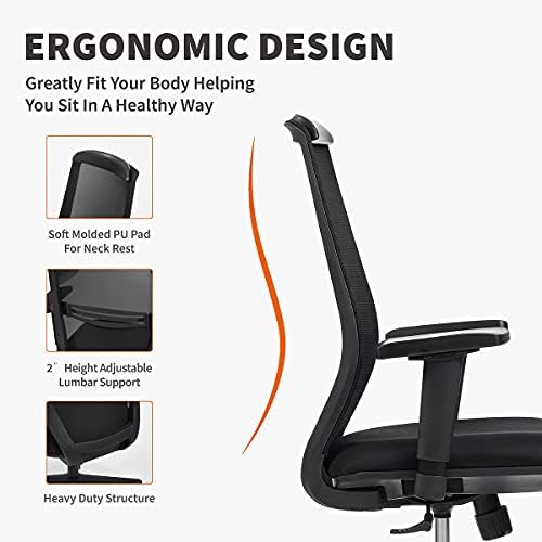 Ergonomic Office Chair with Neck Support, Home Office Desk Chairs with Adjustable Arms, High Back Black Mesh Chair with Adjustable Lumbar Support, Big and Tall Comfortable Office Chair for Home,Indoor