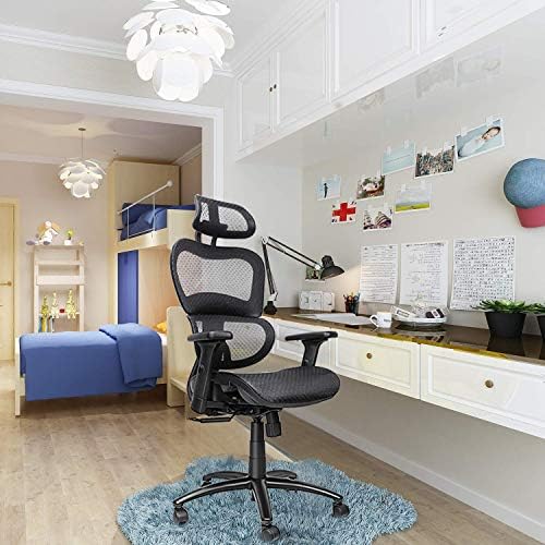 Ergousit Ergonomic Office Chair -Mesh Computer Chair with Adjustable 3D Armrest, Lumbar Support and Headrest – Rolling Desk Chair, Gaming Chairs, Executive Swivel Chair for Home and Office(Black)