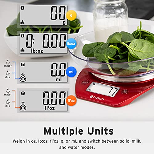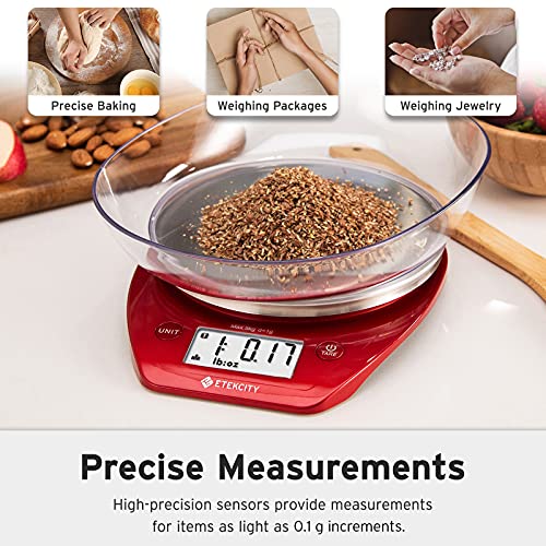 Etekcity 0.1g Food Scale, Bowl, Digital Grams and Ounces for Weight Loss, Dieting, Baking, Cooking, and Meal Prep, 11lb/5kg, Stainless Steel Red