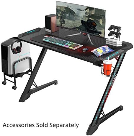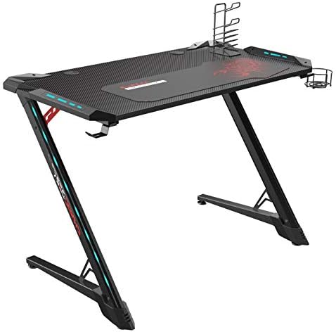 Price: (as of – Details) Product Description ✔【LARGE GAMING SURFACE】 – This gaming desk has a sleek carbon fiber texture and the gaming surface has plenty of space for your gaming monitors, gaming keyboard, and other gaming gear. The gaming surface measures 44.5” wide by 24.2” deep, supports up to 40 inch monitor.✔【RGB LED LIGHTING】