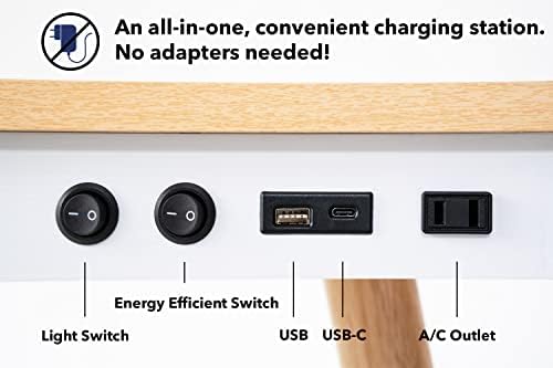 The Future desk includes one USB charging port and one USB-C charging port. The USB port is reversible so you won’t ever have to fumble with your cords to figure out which side is correct.