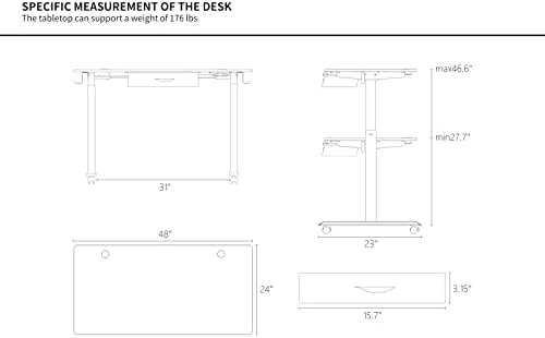 Height Adjustable Lift: The brake system is controlled by electric motors to adjust different tabletop heights from 27.7 to 46.6 Inches. 4 Positions memory functions lift conveniently and quickly