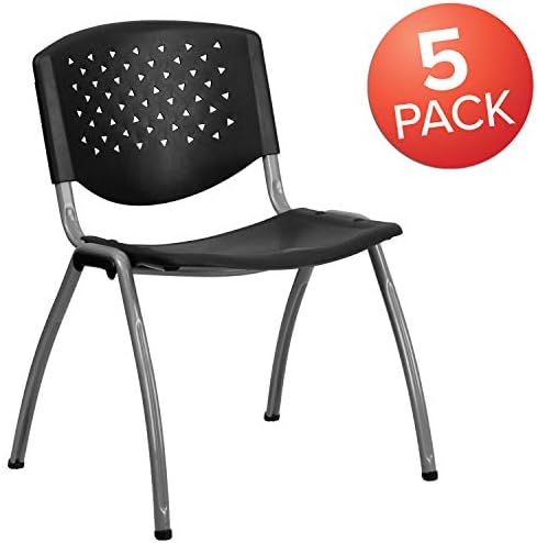 Flash Furniture 5 Pack HERCULES Series 880 lb. Capacity Black Plastic Stack Chair with Titanium Gray Powder Coated Frame