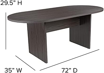 Flash Furniture 5 Piece Rustic Gray Oval Conference Table Set with 4 Black and Chrome LeatherSoft Executive Chairs