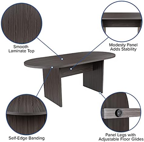 Oval conference table: stain-resistant smooth melamine laminate top, modesty panel, adjustable glides