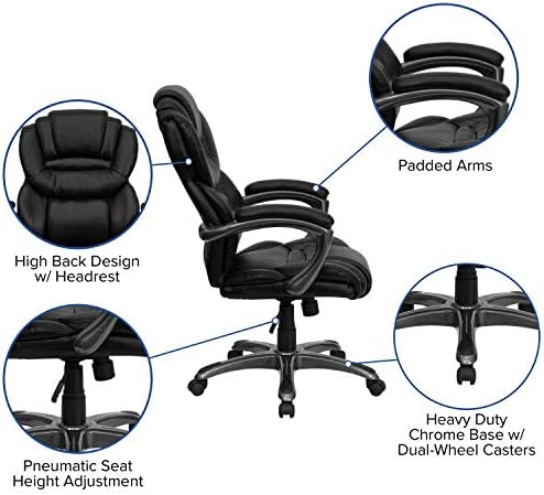 Price: (as of – Details) This popular contemporary office chair features soft LeatherSoft upholstery, an overstuffed seat, back and arms, and ergonomic styling to provide an unmatched sitting experience. LeatherSoft is leather and polyurethane for softness and durability. High back office chairs have backs extending to the upper back for greater support. The high back