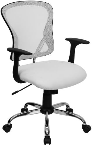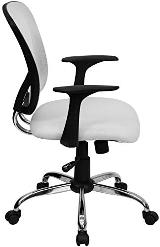 Flash Furniture Mid-Back White Mesh Swivel Task Office Chair with Chrome Base and Arms