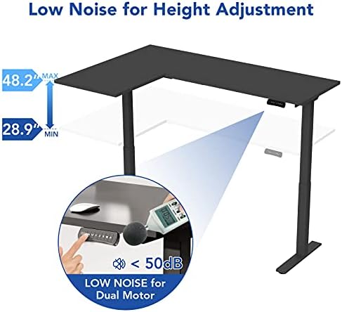Price: (as of – Details) SPACIOUS DESKTOP: The expansive L-shaped work surface is seamlessly crafted with environmentally sourced splice board in sizes of 71″ x 48″, providing ample space for ongoing projects and office supplies. The reversible panel configures easily for both left-hand and right-hand users.ELECTRIC HEIGHT ADJUSTABLE LIFT SYSTEM: The dual-motor lift mechanism offers