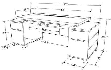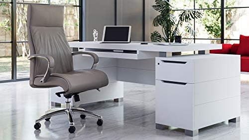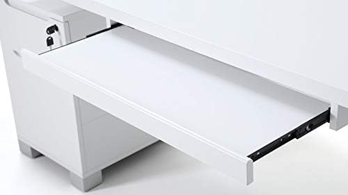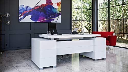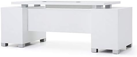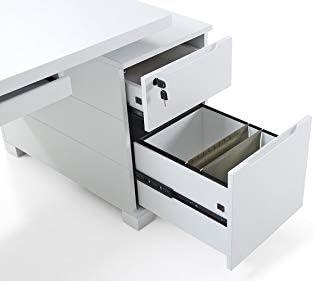 Price: (as of – Details) Desktop: W 63″ x D 31.5″ x H 29.5″White Matte Lacquer Finish with Black Cable Cutout BarSilver Painted Wood Feet and Risers4 Locking Drawers with 2 for Letter or Legal Filing