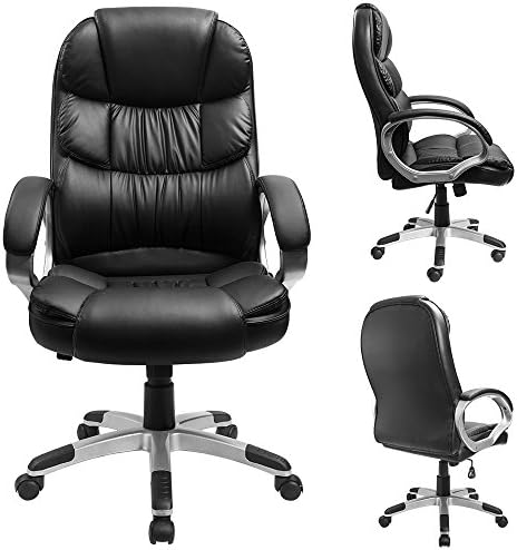 Furmax High Back Office Chair Adjustable Ergonomic Desk Chair with Padded Armrests,Executive PU Leather Swivel Task Chair with Lumbar Support (Black)