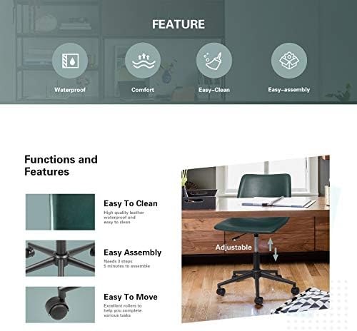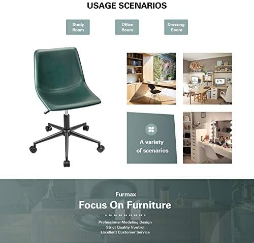 Furmax Mid Back Task Chair PU Leather Adjustable Swivel Office Chair Bucket Seat Armless Computer Chair Modern Low Back Desk Conference Chair (Green)