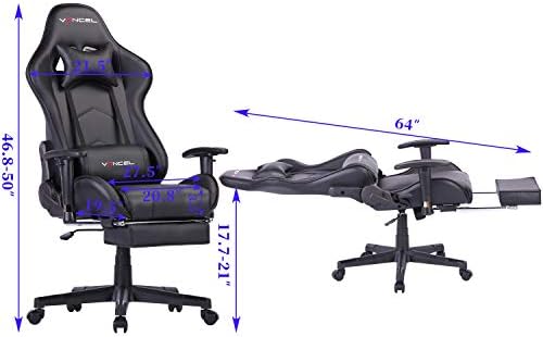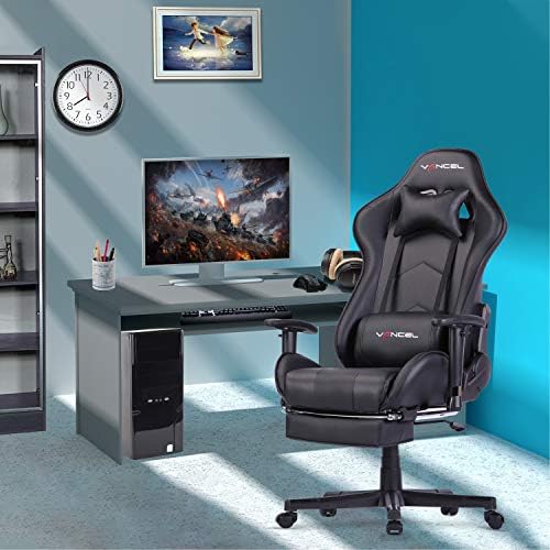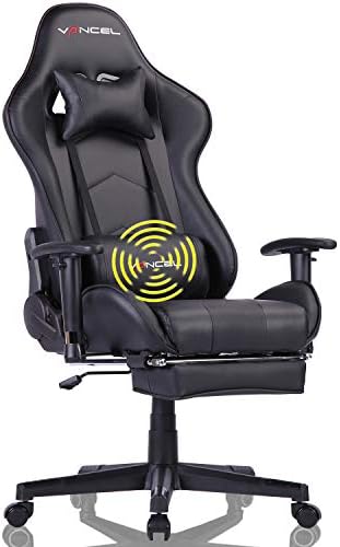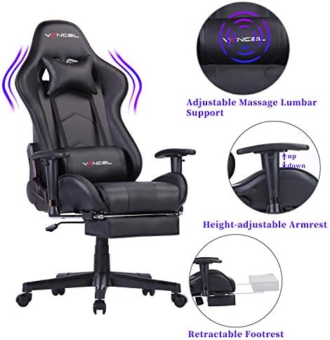 Gaming Chair Office Desk Chair High Back Computer Chair Ergonomic Adjustable Racing Chair Executive PC Chair with Headrest,Massager Lumbar Support & Retractible Footrest (Black)