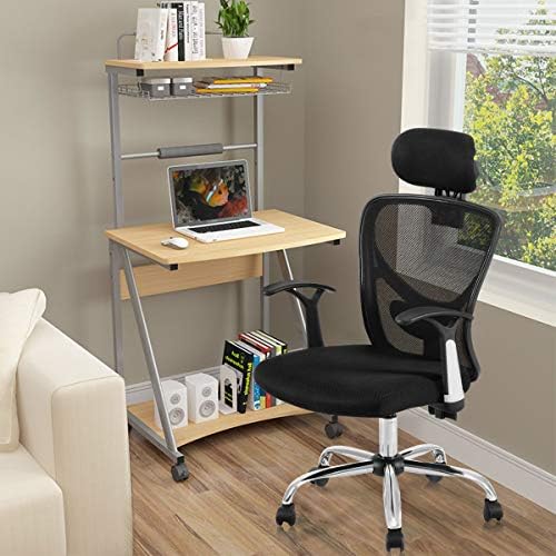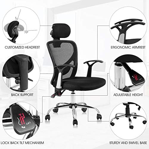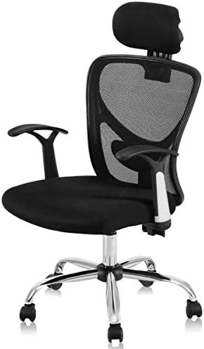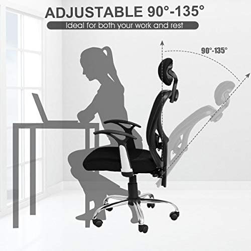 Giantex High Back Mesh Office Chair with Adjustable Headrest and Tilt-Down Backrest, Ergonomic Breathable Computer Desk Chair for Home Office, Executive Mesh Task Chair (Black)