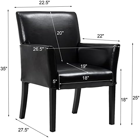 Giantex Leather Reception Guest Chairs W/Padded Seat and Arms Ergonomic Mid-Back Office Executive Side Chair for Meeting Waiting Room Conference Office Guest Chairs,Black