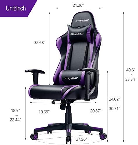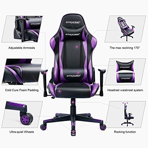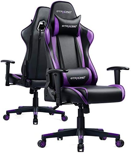 GTRACING Gaming Chair Racing Office Computer Game Chair Ergonomic Backrest and Seat Height Adjustment Recliner Swivel Rocker with Headrest and Lumbar Pillow E-Sports Chair (Purple)