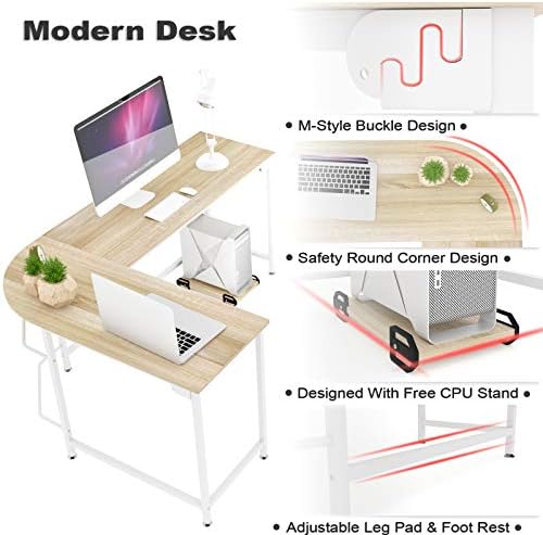 [L-Shaped Corner Design] This office desk has an L-shaped corner design, which offers a corner wedge for easy multitasking and organization with space-saving needs and many storage solutions for your home office, maximize and create ideal workspace.It also comes with a free CPU stand that places freely underneath.