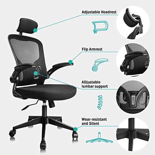 HARBLAND Ergonomic Office Chair, High Back Mesh Office Chair Desk Chair with Flip-up Arms and Adjustable Lumbar Support Headrest for Home Office