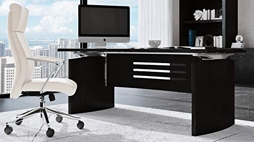 Price: (as of – Details) The spacious, art deco-inspired Harrison Desk provides an extensive workspace designed to help you get down to business. The Harrison executive desk is a symphony of curves with its rounded desktop and modesty panel with cut out details and silver painted accents. The black stained American oak wood veneer evokes