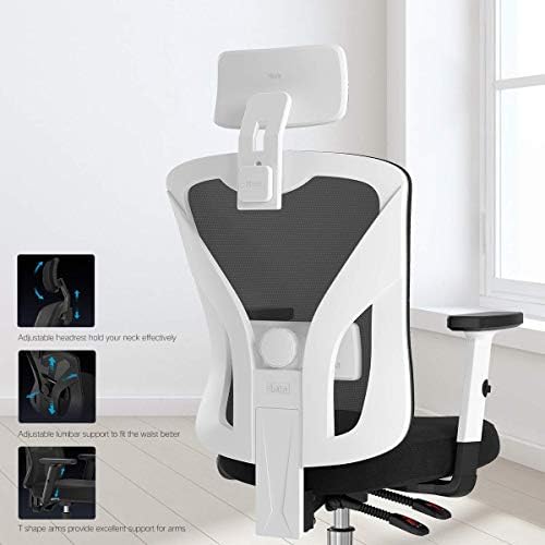 Hbada Ergonomic Office Desk Chair with Adjustable Armrest, Lumbar Support, Headrest and Breathable Skin-Friendly Mesh, White