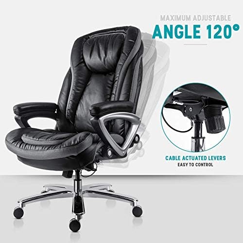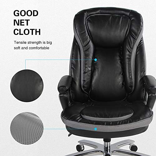 【HEAVY DUTY DESIGN】 The executive chair was designed with solid and stable structure, explosion-proof gas, heavy duty base, 500lbs weight capacity; meanwhile, for big and tall users, exceptionally large seat and high back would be a humanized design.