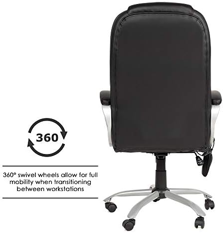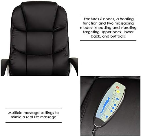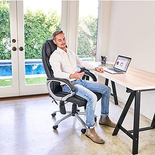 MASSAGE AT WORK – The chair’s two massage modes target the upper back, lower back, and buttocks. The chair comes with a remote equipped with a heated button and fixed-point button that deliver massage in 15-minute increments.