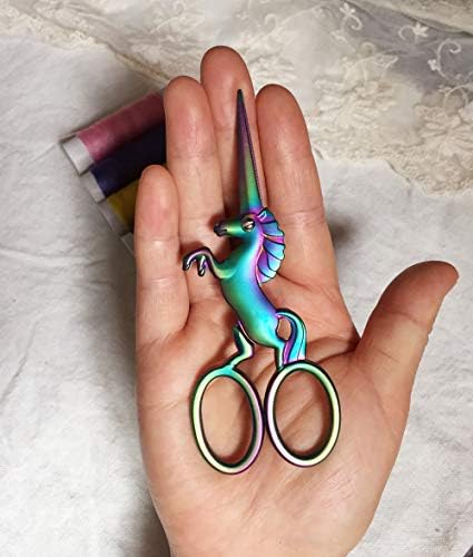 HITOPTY Unicorn Embroidery Scissors, Stainless Steel 4.5inch Cute Snips for Needlework, Cross-Stitch, Embroidery, Sewing, Quilting and Needlepoint (Rainbow)