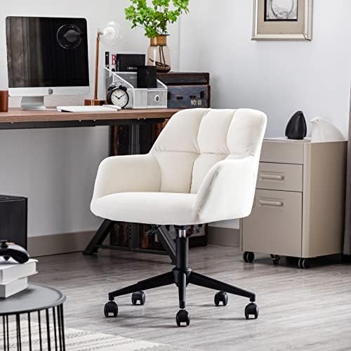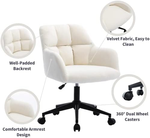 Hi&Yeah Modern Velvet Office Chair, Height Adjustable Comfy Desk Chair with Wheels, Swivel Armchair for Living Room Home Office Computer, White