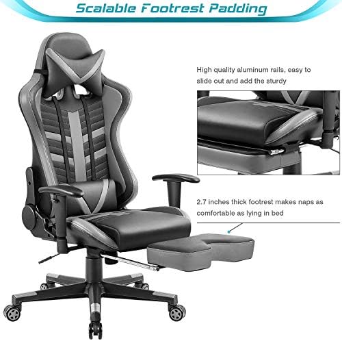 Homall Executive Desk Footrest Computer Swivel Office Headrest and Lumbar Support Ergonomic High-Back Racing Chair, Gray