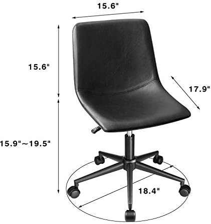 Homall Mid Back Task Chair Brown Leather Computer Office Chair Low Back Adjustable Swivel Vanity Chair Modern Armless Ribbed Conference Chair (Black)