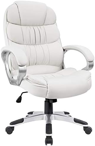 Homall Office Chair High Back Computer Chair Ergonomic Desk Chair, PU Leather Adjustable Height Modern Executive Swivel Task Chair with Padded Armrests and Lumbar Support (White)