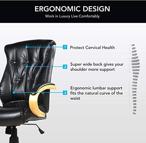 Home Office Chair Ergonomic Desk Chair Executive Computer Chair Rolling Swivel High Back PU Leather Task Chair for Women Men Adults, Black