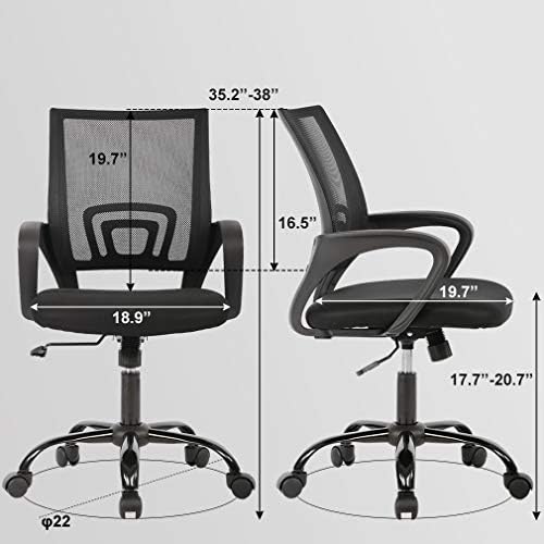 Home Office Chair Ergonomic Desk Chair Mesh Computer Chair with Lumbar Support Armrest Executive Rolling Swivel Adjustable Mid Back Task Chair for Women Adults, Black
