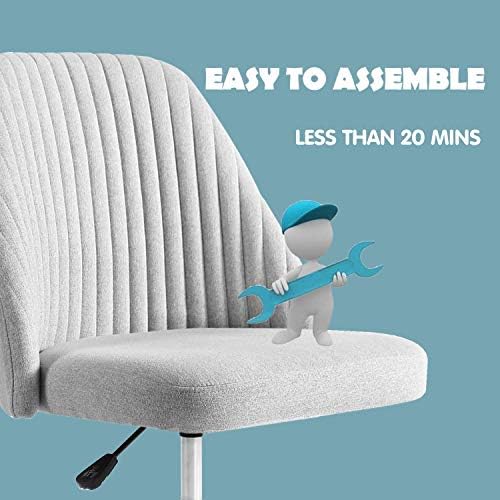 Home Office Desk Chair, Modern Adjustable Low Back Rolling Chair Twill Fabric Upholstered Chair Armless Cute Chair with Wheels for Bedroom, Classroom, and Vanity Room (Light Grey)