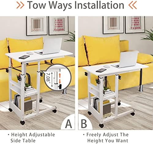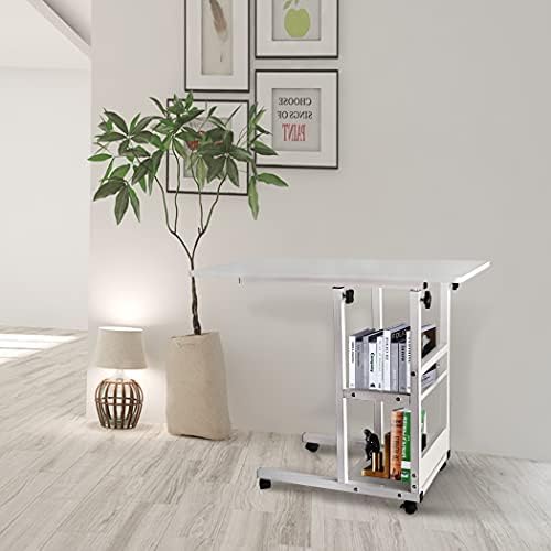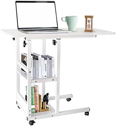 Home Office Desk Sofa Side Table 31×16” Moveable Height Adjustable Modern Storage Couch Table Portable Mobile Computer Desk Small Study Desk with Wheels for Bedroom Living Room Easy Assembly White