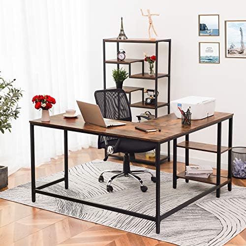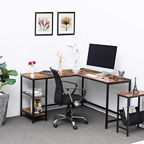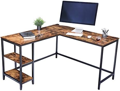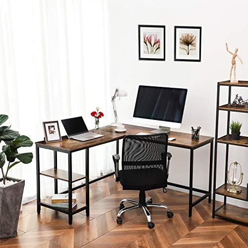 COMPUTER DESK, EYE-CATCHER: Sturdy and stable metal frame in elegant black, matches the classic and durable wooden board in rustic brown perfectly, this kind of combination makes this L-shaped computer desk a piece a art
