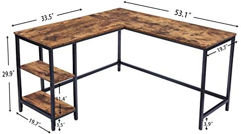 MAXIMIZE YOUR SPACE: L-shape, the size of this writing desk is 53.1”L x 53.1”W x 29.9”H, this corner desk will perfectly fit in the corner of your office. 2-3 monitors are no problem on there