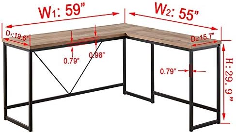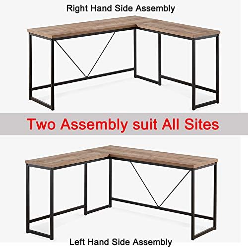 Left Hand Side Assembly and Right Hand Side Assembly are accessible to you in accordance with your desired furnishing style, making this eye-catching L computer desk versatile to be adopted to diverse situation and anchoring your space ensemble with a touch of industrial charm. Writing desk dimensions: 59 / 55”W x 19.7”D x 29.9”H.