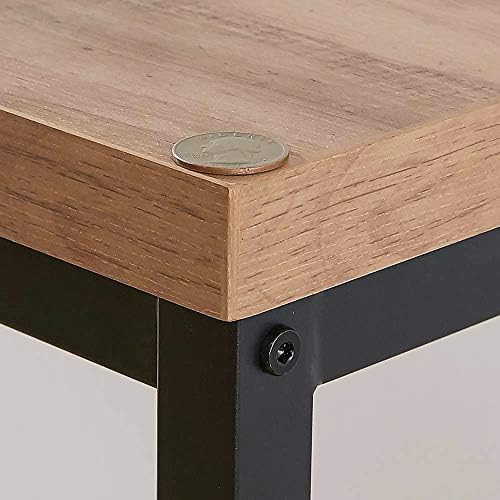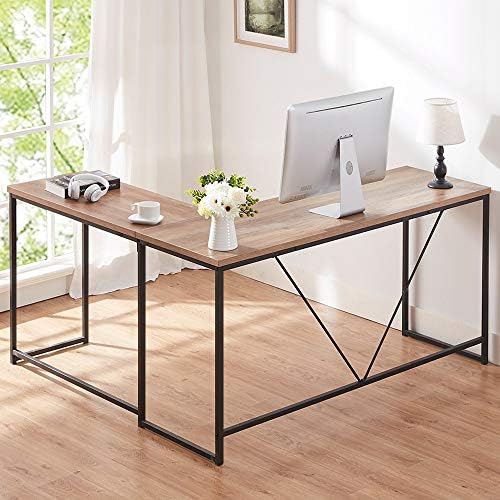 Rustic Appeal and Ample Space: Pairing a sturdy metal frame with an L-shaped tabletop in a rustic oak finish, this computer desk is perfect for perching your PC or laptop while still maintaining enough room for other office essentials.