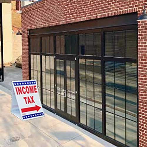 “INCOME TAX” sandwich board sign kit made by Signs ‘R Us. Designed to help attract more people to your property.