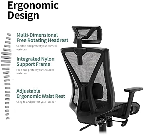 Price: (as of – Details) Product Description *ERGONOMIC DESIGN* – The ergonomic office chair backrest mimics the shape of the human spine, providing support for your back and neck, allowing you to maintain the correct sitting posture and ease pressure and pain on the back for everyday work.*BREATHABLE MESH * – The breathable mesh back
