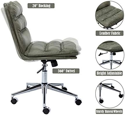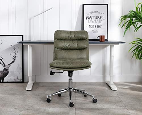 Janoray Task Computer Chair Faux Leather Swivel Chair Comfy Office Chair no Arms Upholstered Recliner Chair for Living Room, Work, Desk, Read, Green
