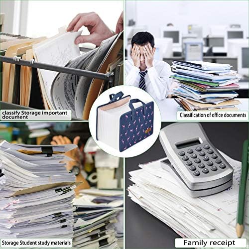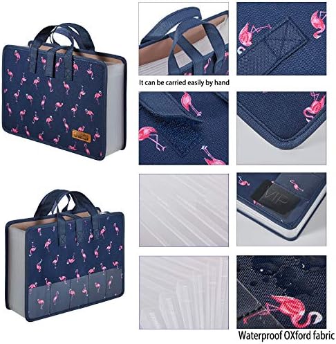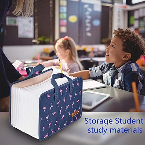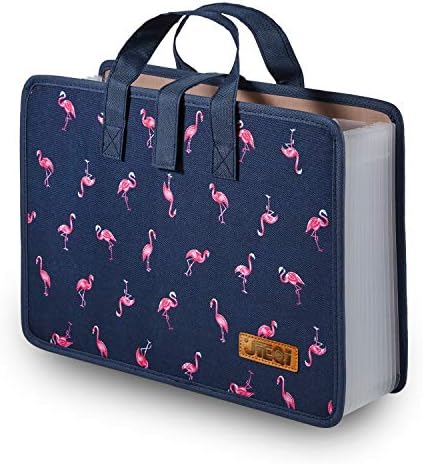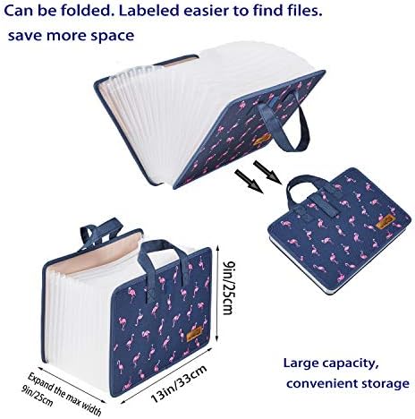 JIEQI Expanding File Folder Document Organizer, 13 Pockets File Folders/Expandable Filing Folders with Handle A4 Size Accordion for Office/Business/School/Family Bill Paperwork (Blue-Flamingo)