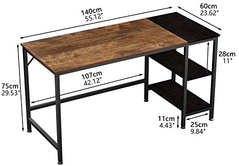 JOISCOPE Home Office Computer Desk, Study Writing Desk with Wooden Storage Shelf,2-Tier Industrial Morden Laptop Table with Splice Board,55 inches(Vintage Oak Finish)