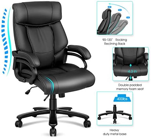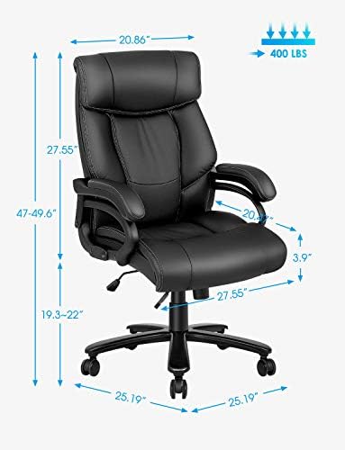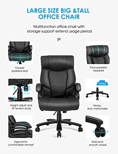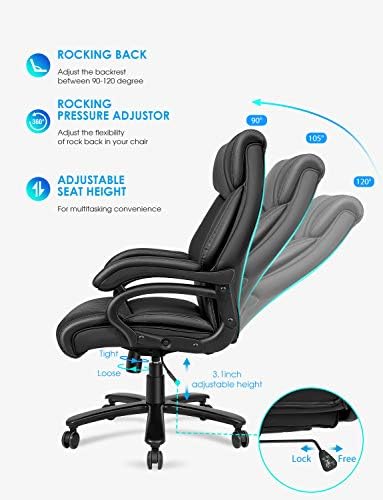 Wider and Comfortable High Back Office Chair: Ultra-high backrest, larger cushion with waterfall seat edge lessens pressure of your leg. Relax your hand by the streamline ergonomic armrest, simple and elegant office chair takes your comfort level to luxurious heights, humanized design big and tall executive chair great for big and tall users