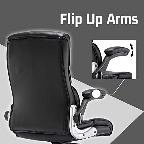 KERMS High Back Executive Home Office Chair, PU Leather Ergonomic Adjustable Computer Desk Chair with Flip up Arms and Lumbar Support (Black)