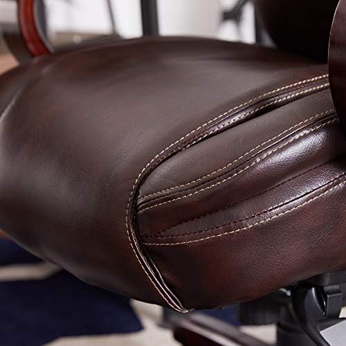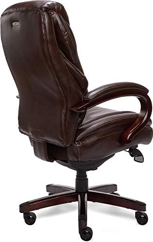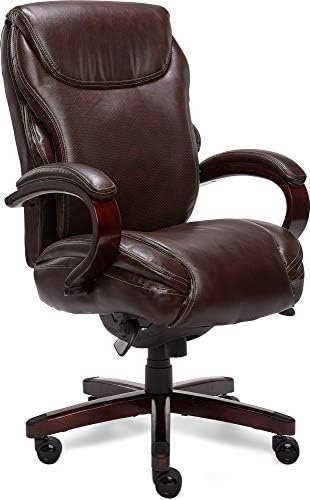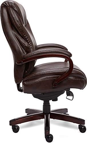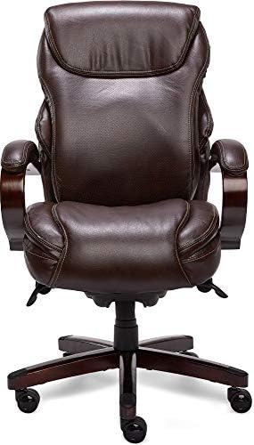 La-Z-Boy Hyland Executive Office Chair with AIR Technology, Adjustable High Back Ergonomic Lumbar Support, Bonded Leather, Brown with Mahogany Wood Finish