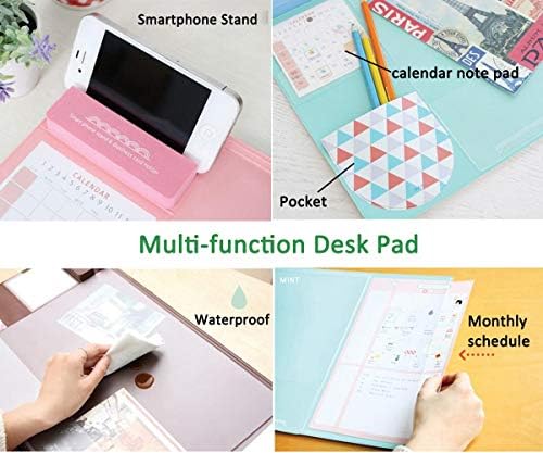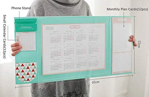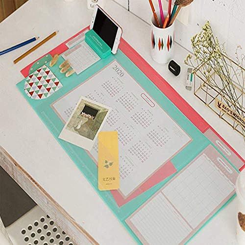 Multi-function Desk Pad: it not only a desk mat, there have a detachable phone stand and a pocket on the left of the mat. cute monthly schedule cards on the right of mat to write your daily plan and a large 2020 calendar under the transparent pvc scale.